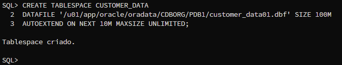 DATAFILE '/u01/app/oracle/oradata/CDBORG/PDB1/customer_data01.dbf' SIZE 100M