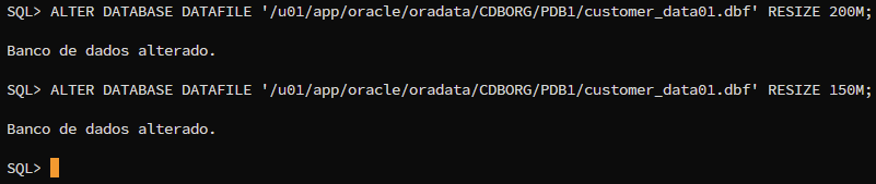 ALTER DATABASE DATAFILE '/u01/app/oracle/oradata/CDBORG/PDB1/customer_data01.dbf' RESIZE 150M;