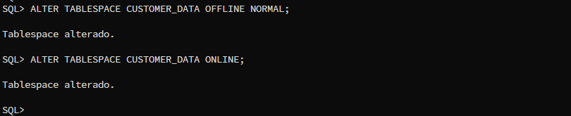 Para manutenção ou backup em modos específicos, você pode colocar uma tablespace offline. CUIDADO: Isso torna os objetos da tablespace inacessíveis!