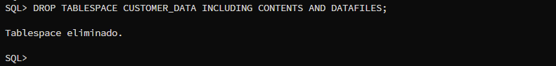 DROP TABLESPACE CUSTOMER_DATA INCLUDING CONTENTS AND DATAFILES;